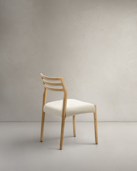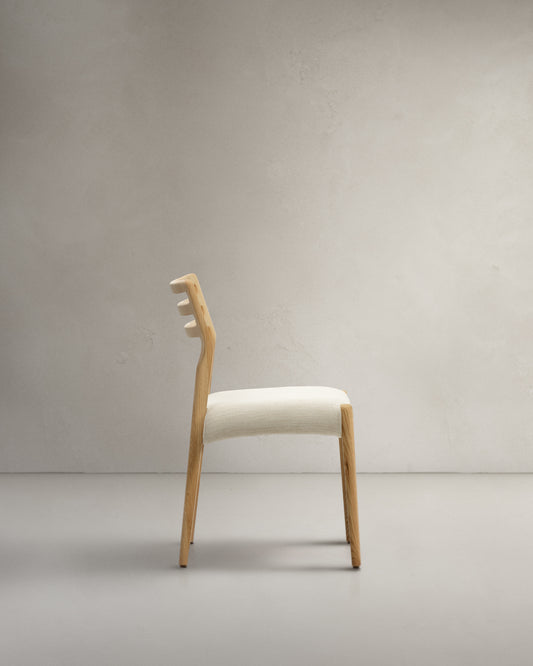 Cudia chair removable cover in beige chenille solid oak wood natural finish FSC Mix Credit