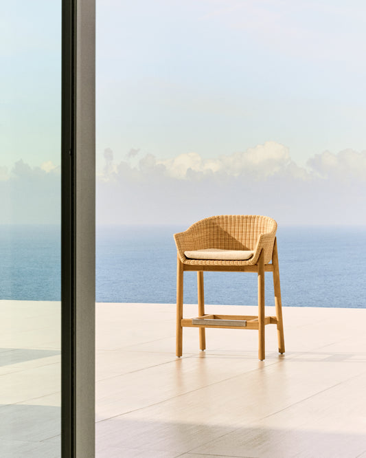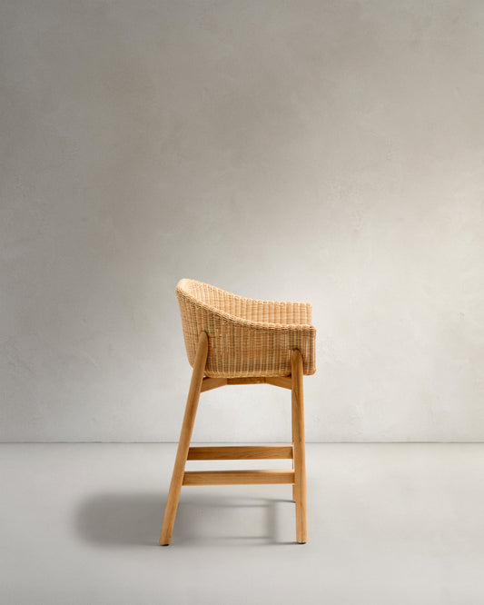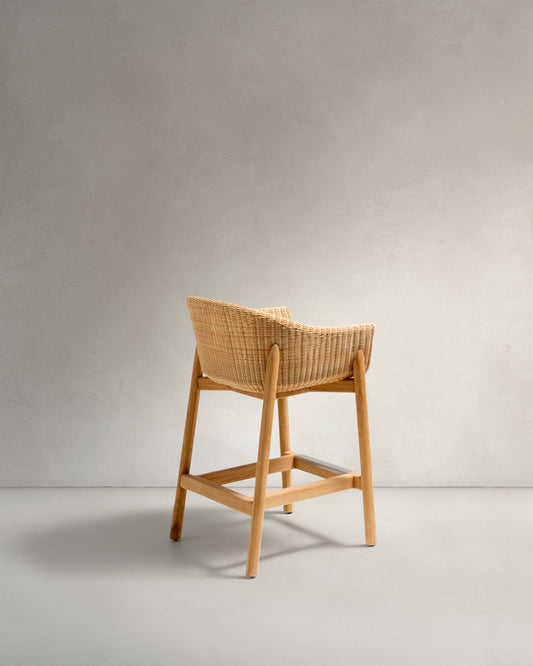 Galea stool in FSC 100% solid teak wood and synthetic rattan 65cm