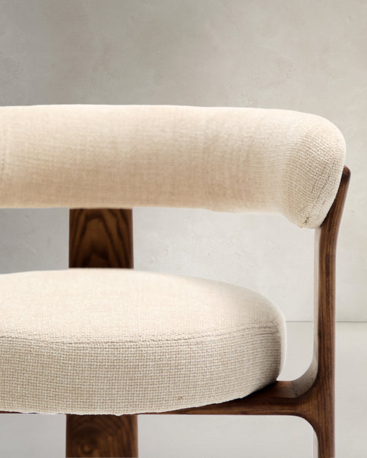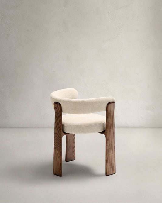 Granite 3-legged chair in beige chenille and with solid ash wood in a walnut finish FSC 100%