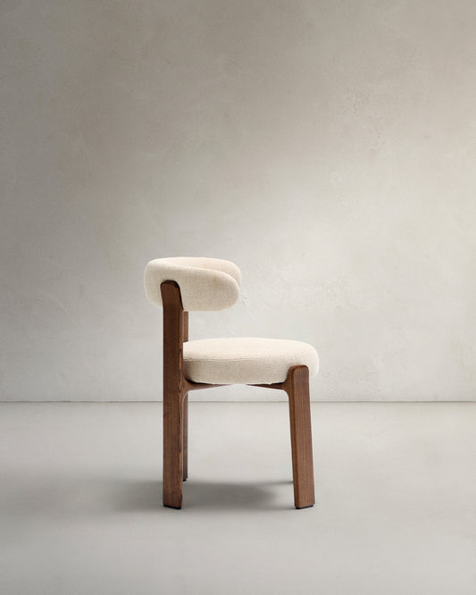 Granite chair in beige chenille and with solid ash wood in a walnut finish FSC 100%