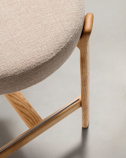 Granite stool in beige chenille and solid ash wood with natural tone finish FSC 100% 65cm