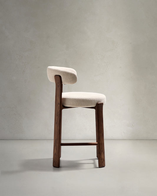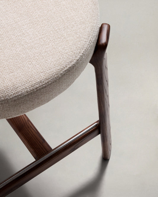 Granite stool in beige chenille and solid ash wood with walnut-coloured finish FSC 100% 65cm