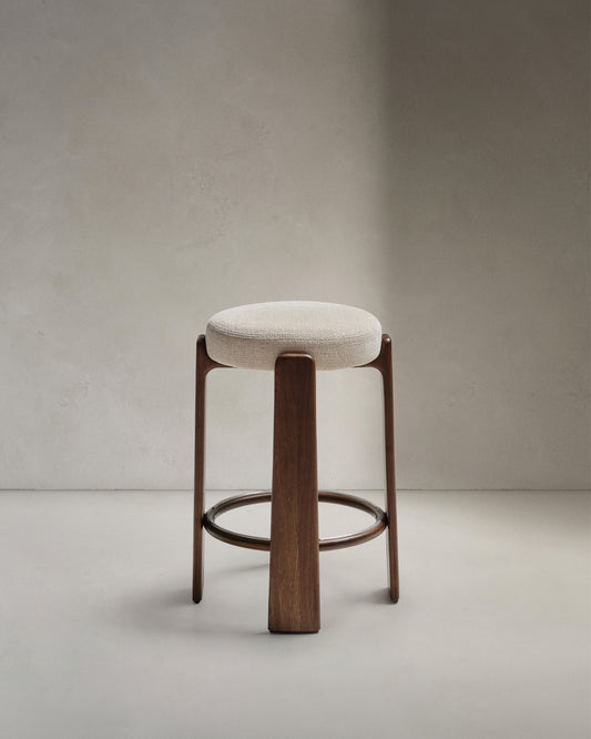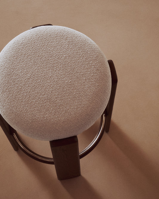 Granite stool in beige chenille and solid ash wood with walnut-coloured finish FSC 100% 75cm