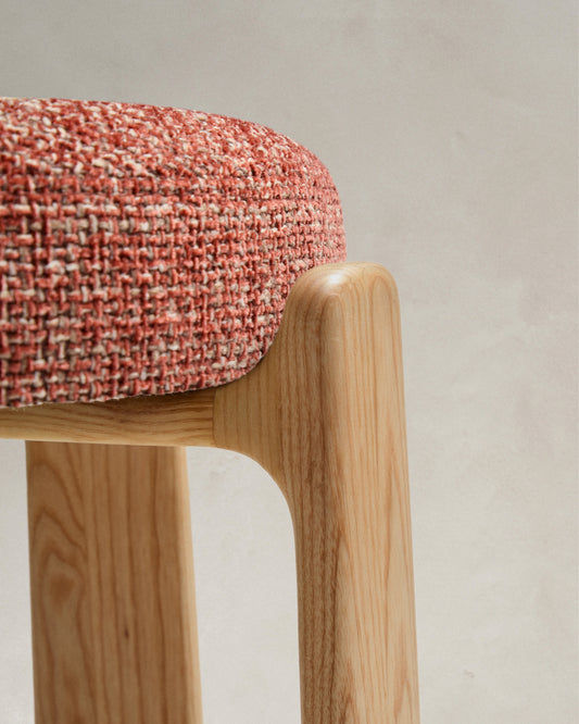 Granite stool in terracotta chenille and solid ash wood with a natural tone finish FSC 100% 65cm