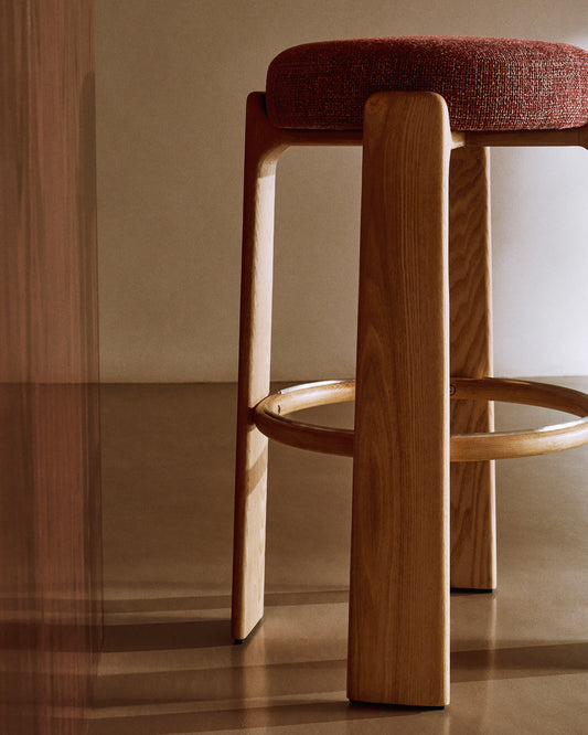 Granite stool in terracotta chenille and solid ash wood with a natural tone finish FSC 100% 75cm
