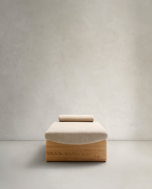Topaz divan in beige chenille with solid ash wood in a natural finish, 200 cm FSC 100%