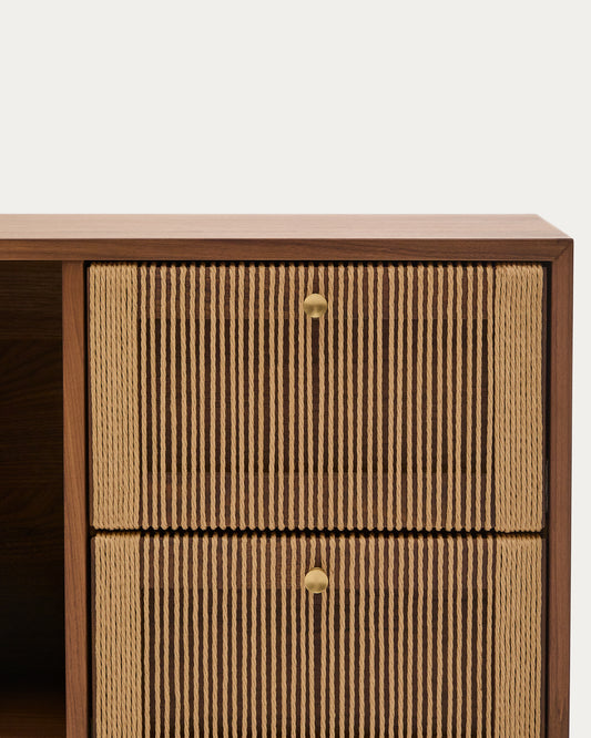 • Sideboard in walnut veneer and legs in solid walnut with natural finish. Doors with hand-braided paper cord detail.