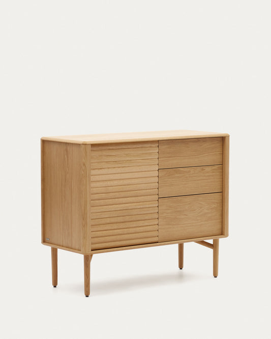 Lenon sideboard with 1 door and 3 drawers, made from oak wood and veneer, 105 x 85 cm FSC MIX Credit