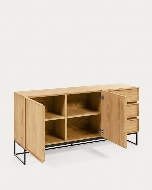 Taiana 2 door 3 drawer sideboard in oak veneer with black steel structure, 160 x 78 cm