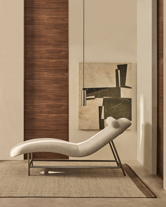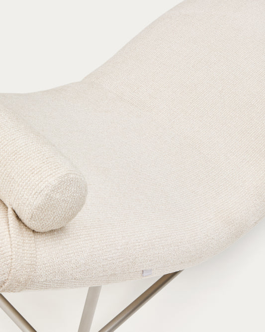 Osla chaise longue in beige chenille with brushed stainless steel legs 175 cm