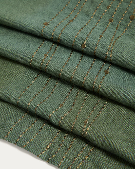 - Linen and cotton table runner with green lurex embroidery.