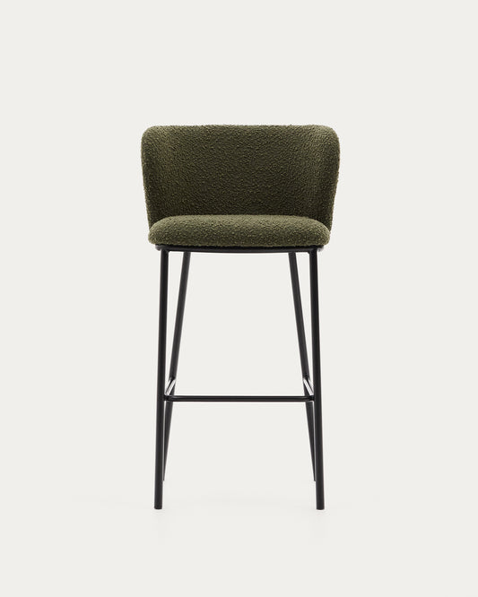 Ciselia stool in green bouclé and black steel, height 75 cm, FSC Mix Credit