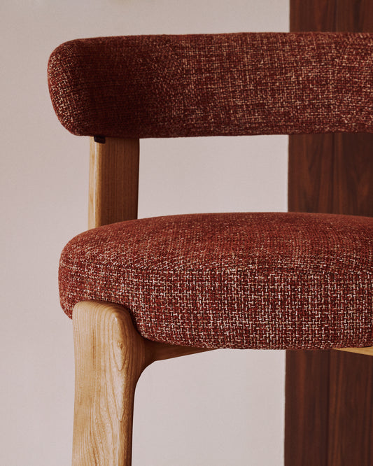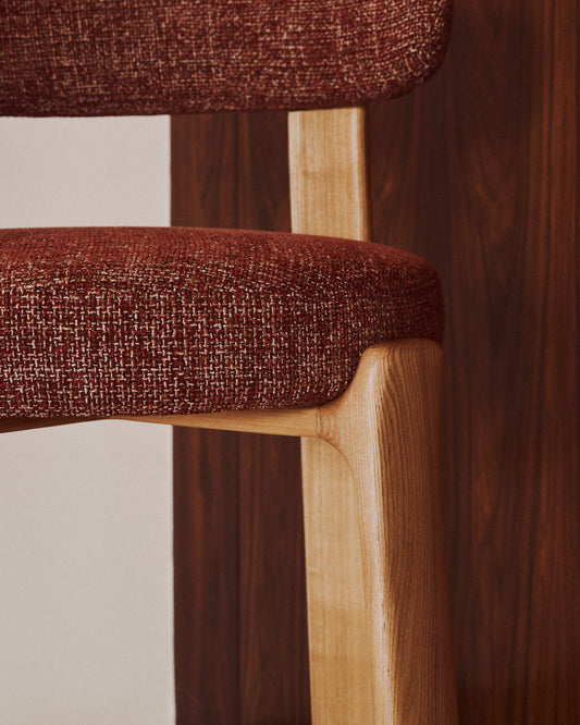 Granite stool in terracotta chenille and solid ash wood with natural tone finish FSC 100% 65cm