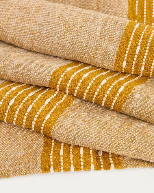 Calena linen jacquard table runner with mustard central stripe 50 x 150 cm