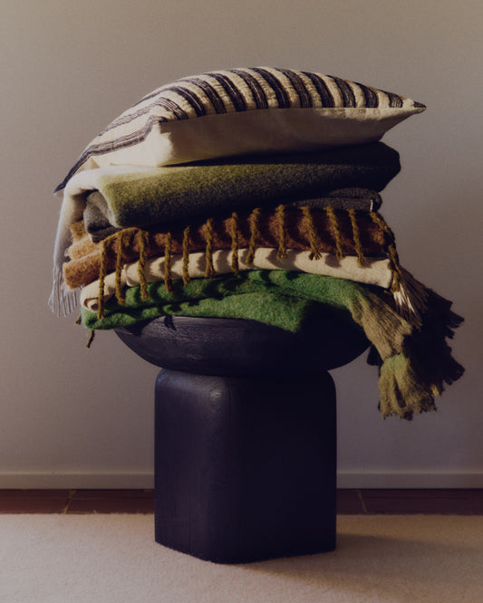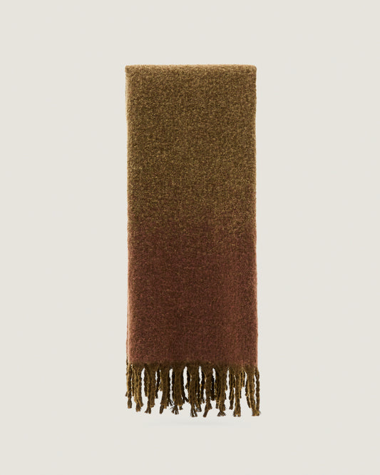 - Green 100% recycled acrylic blanket with fringing.