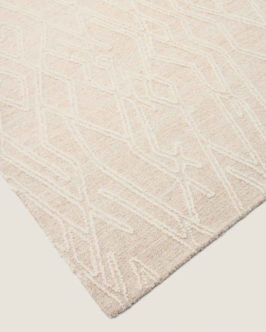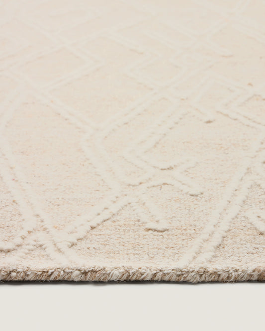 Selira beige wool rug with embroidered effect 300 x 200cm