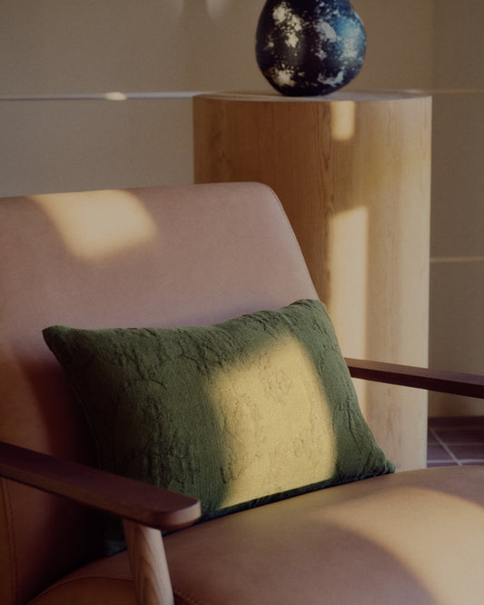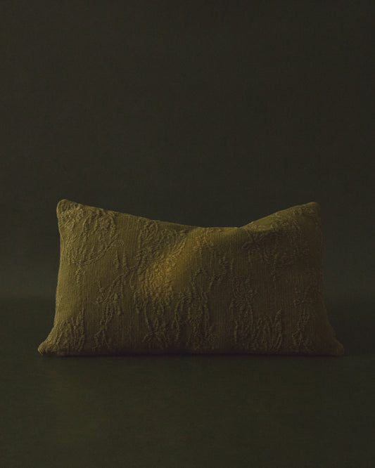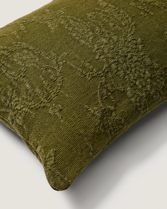 Velina cushion cover in green washed linen jacquard with floral design 30 x 50 cm