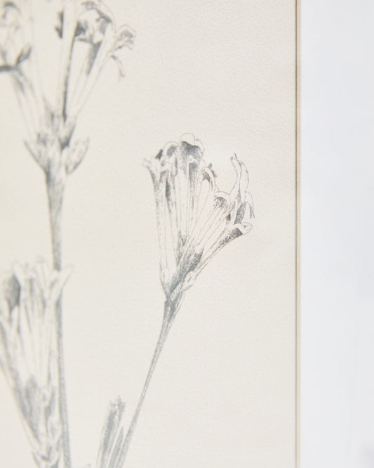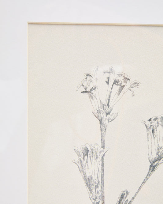 - Picture with botanical-style printed pencil illustration.