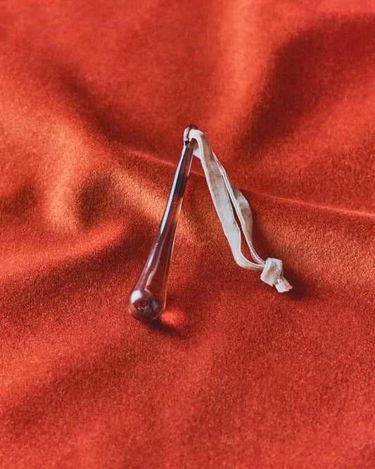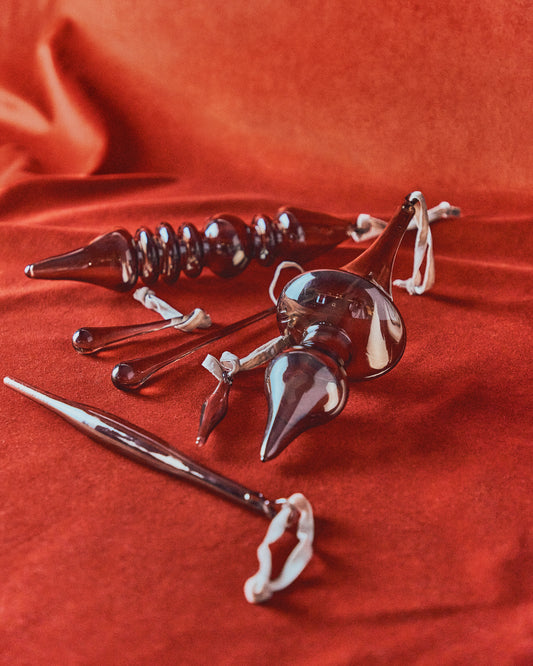 - Set of hanging ornaments made of recycled borosilicate glass.