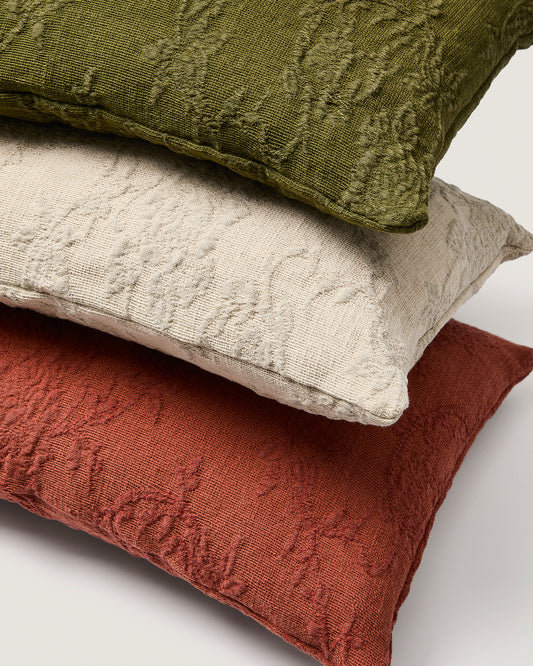 - Washed linen blend cushion cover with floral jacquard.