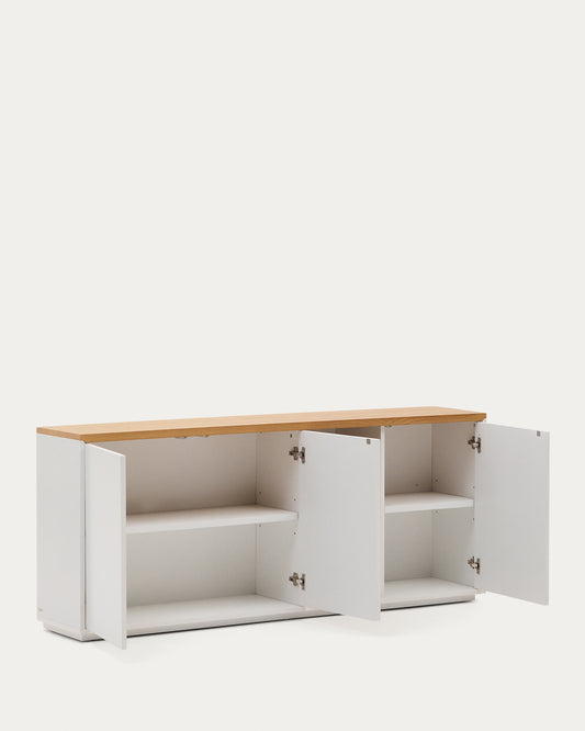 • Sideboard of 180 x 75 cm with oak veneer top and doors in white lacquer.