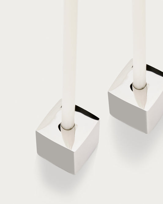 Acadia set of 4 stainless steel candle holders with a shiny silver finish