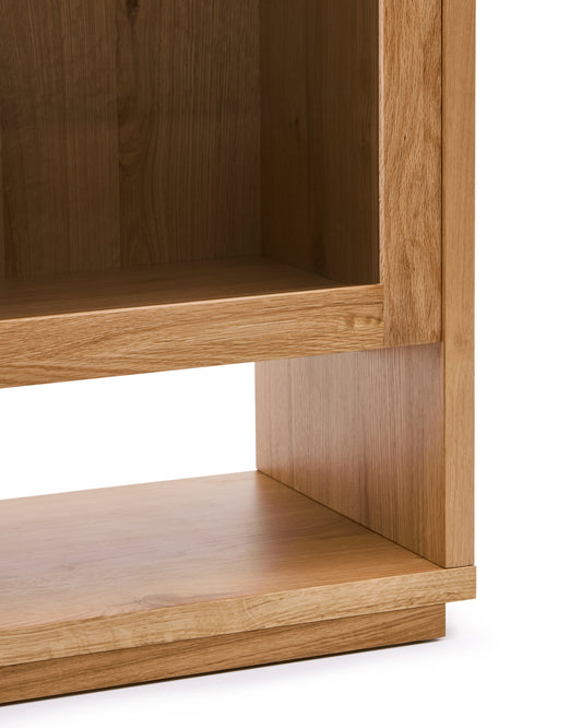 - Display cabinet in oak wood veneer with a natural finish.