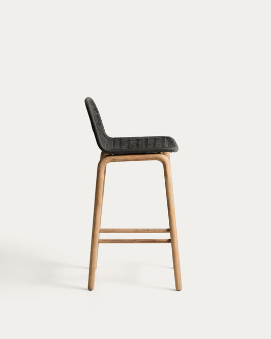 Alipa stool in FSC 100% solid acacia wood and dark grey rope cord 75 cm