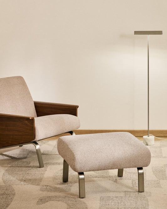 - Footrest upholstered in chenille with legs in brushed stainless steel.