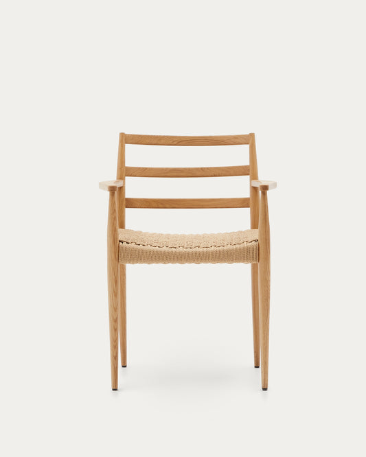 Analy chair with armrests in solid oak wood in a natural finish and rope cord seat FSC 100%