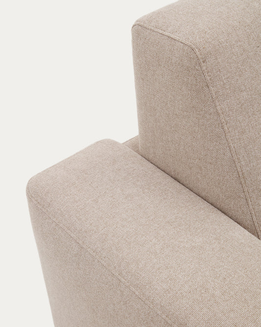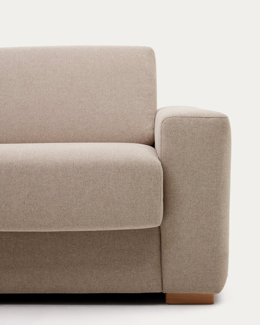 - Sofa bed with solid beech wood legs and upholstered in a structured beige fabric with high abrasion resistance that is machine washable. Removable seat and backrest covers.
