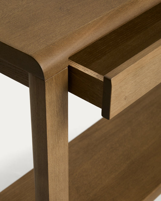 Arelida console table made of oak veneer and solid oak wood with light brown finish 112 x 80 cm FSC Mix Credit
