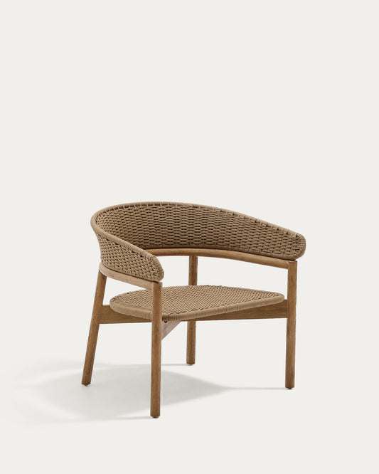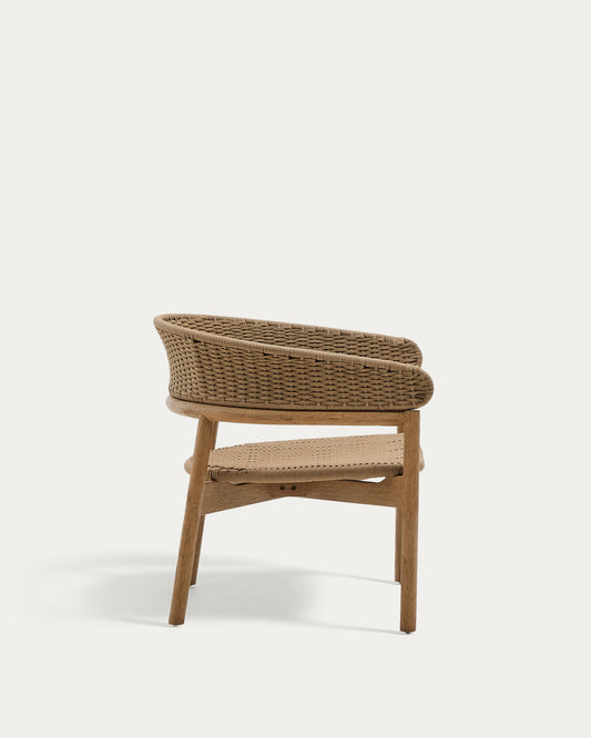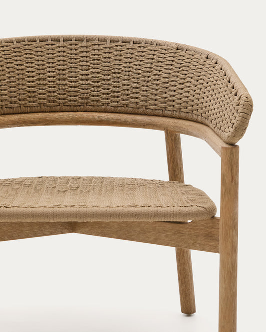 Arinella armchair in FSC 100% solid acacia wood with natural finish and beige rope cord