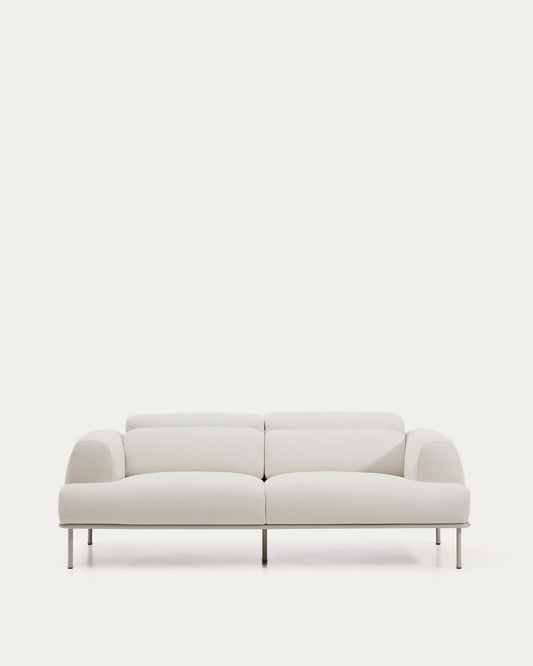 Aurum 3-seater sofa in ecru chenille with reclining headrest and matte beige metal base 234cm FSC Mix Credit