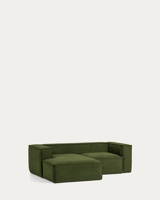 Blok 2-seater left chaise longue sofa in green thick corduroy 240cm FSC Mix Credit