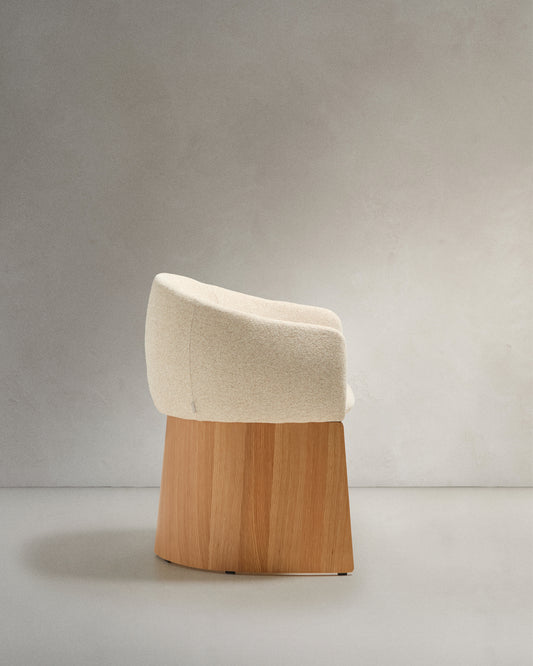 Bosca chair in beige chenille and oak veneer FSC 100%