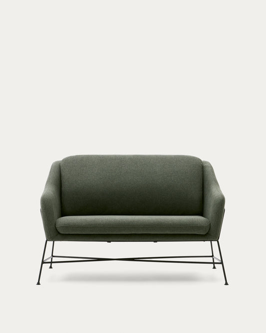 Brida 2-seater sofa in green and steel legs with black finish, 128 cm