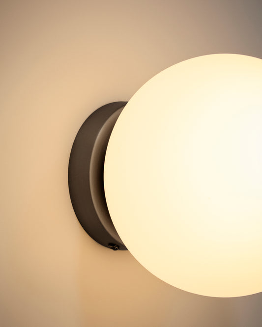 Brisia metal wall lamp with black finish and 1 frosted glass ball Ø15cm