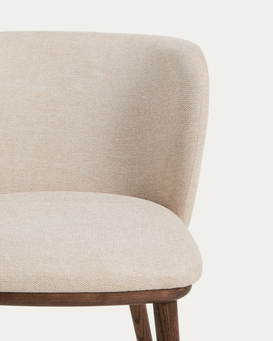 Ciselia beige chenille chair with solid ash wood legs with walnut-coloured finish FSC Mix Credit