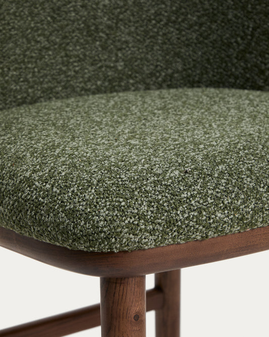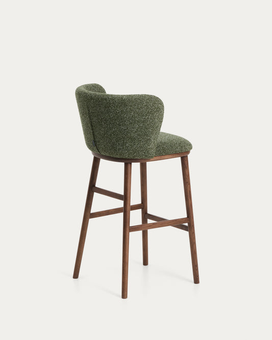 Ciselia dark green thick chenille stool with solid ash wood legs with walnut-coloured finish FSC Mix Credit 75cm
