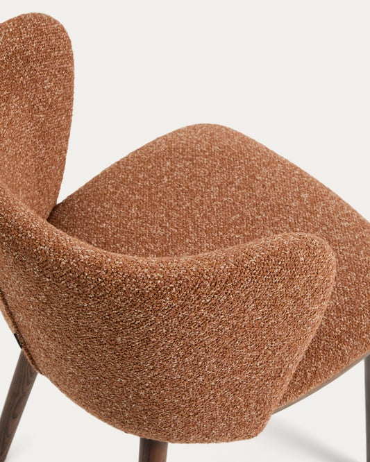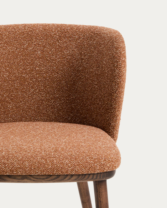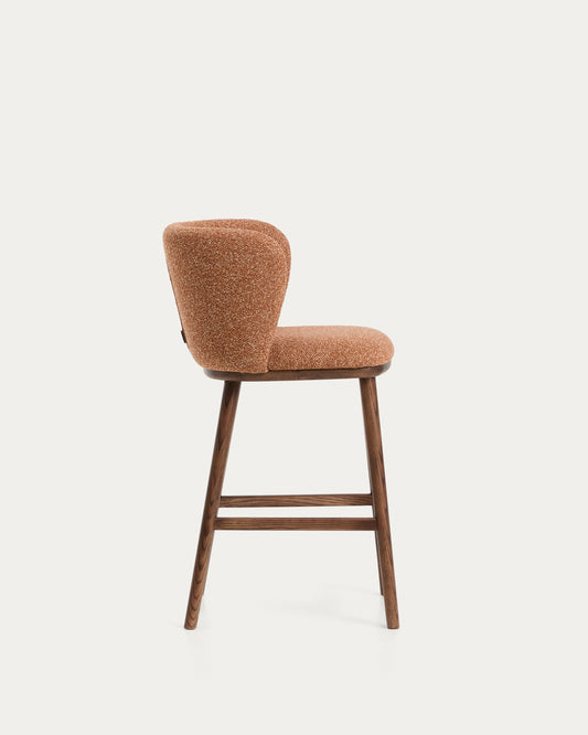 Ciselia terracotta thick chenille stool with solid ash wood legs with walnut-coloured finish FSC Mix Credit 65cm
