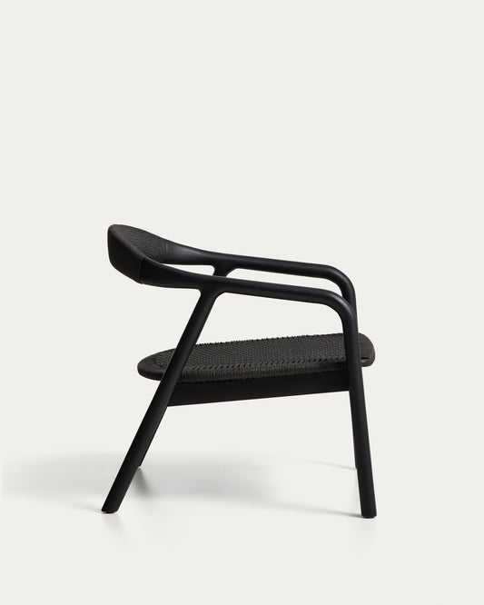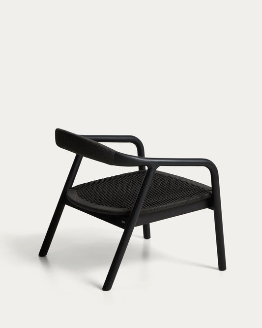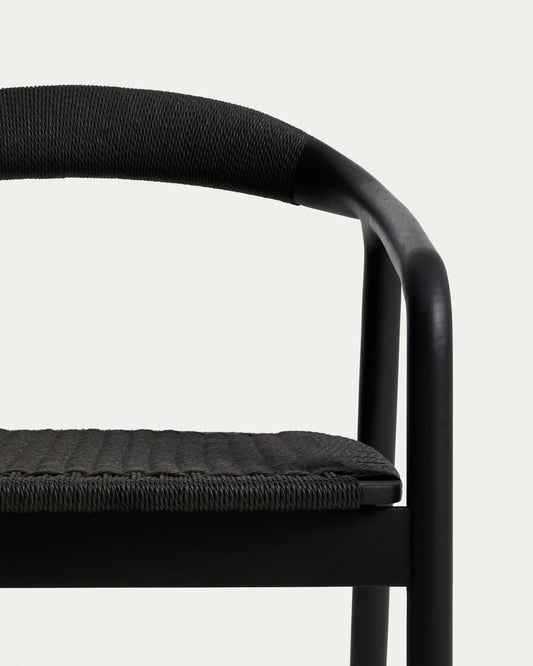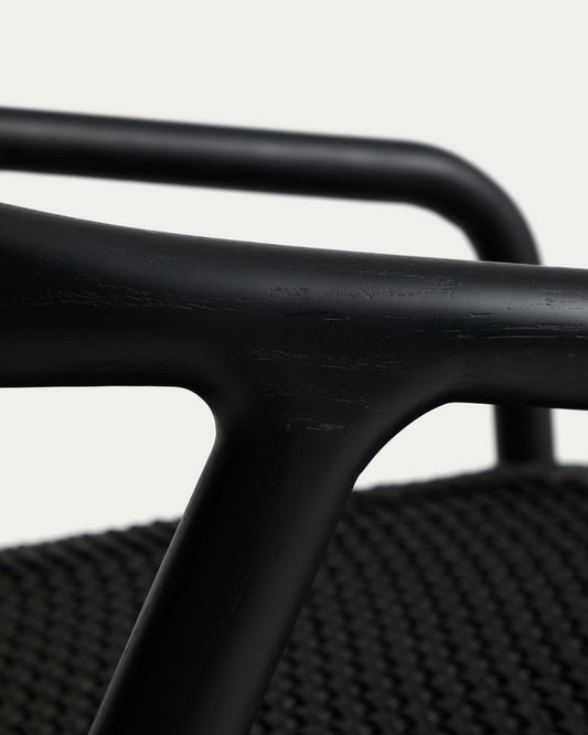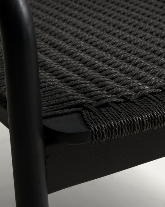 Derile armchair in solid oak wood with black finish and black paper rope FSC 100%.