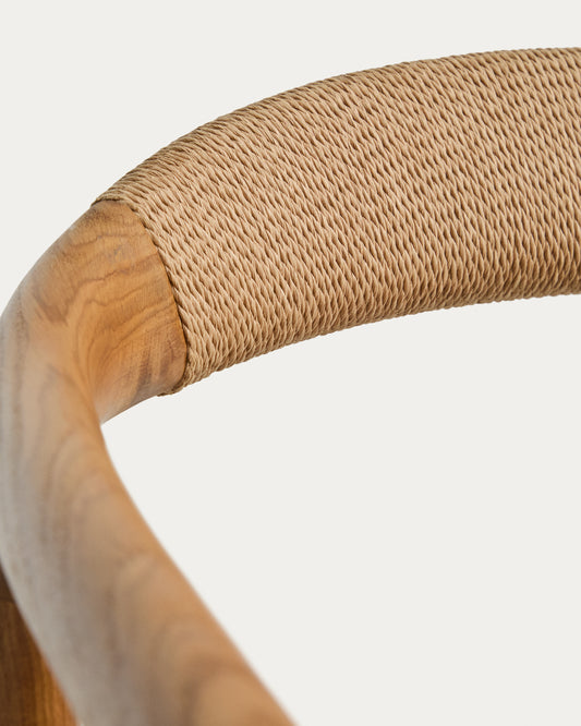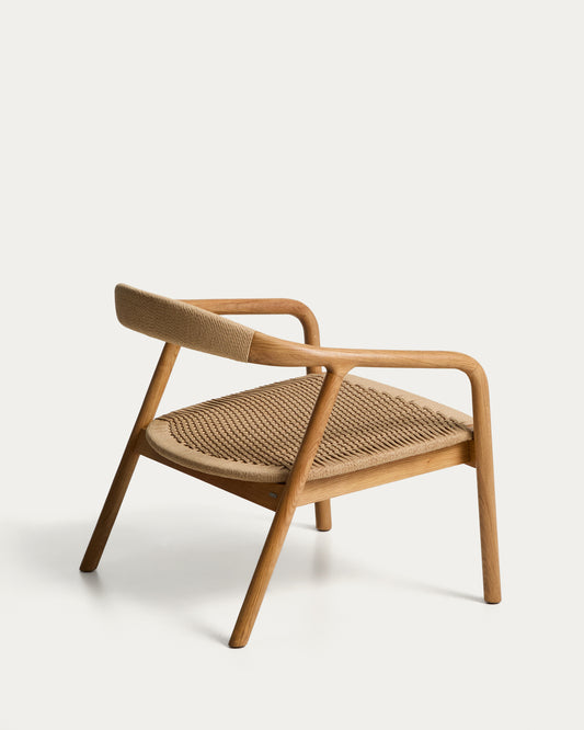 Derile armchair in solid oak wood with natural-tone finish and beige paper rope cord FSC 100%