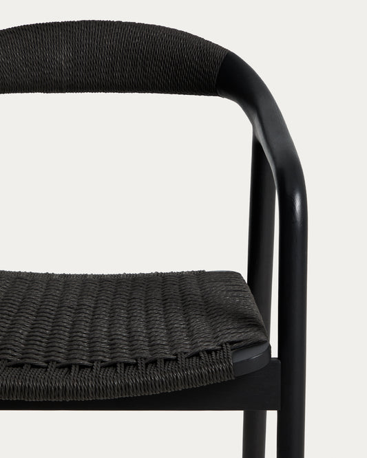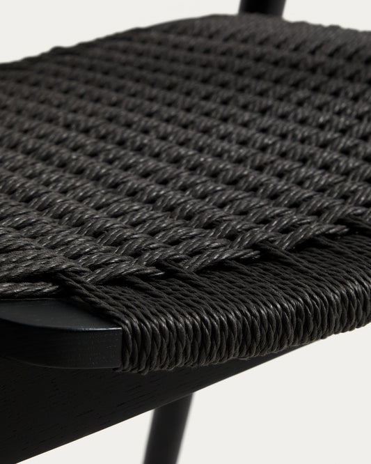 Derile chair in solid oak wood with black finish and black paper rope cord FSC 100%