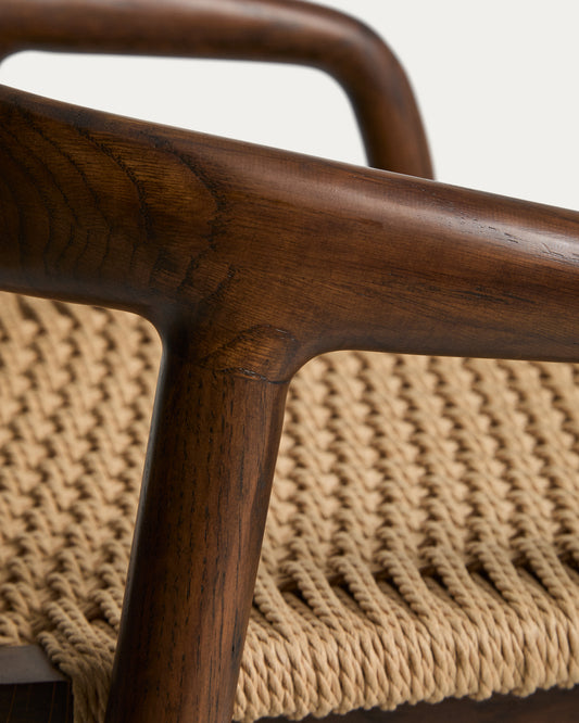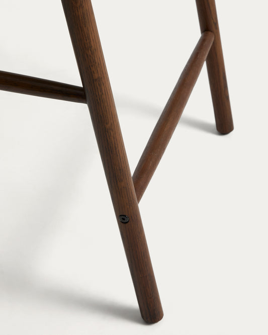 Derile stool in solid oak wood with walnut finish and beige paper rope cord FSC 100% 65 cm