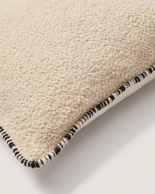 Enari beige 100% cotton cushion cover with contrasting black trim 50 x 50cm