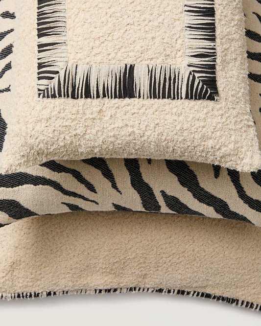- Cotton cushion cover with contrasting trim.