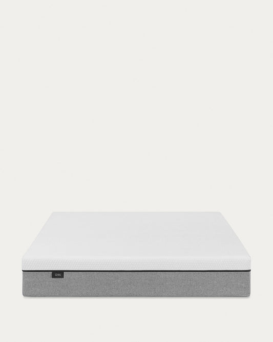 Soft flex fabric An exceptional comfort layer, gently adapting to your body’s contours. Its flexibility ensures that every movement is accompanied by a sense of lightness and well-being, allowing greater freedom of movement without losing proper support. This layer is designed to offer an enveloping and pleasant sleeping experience. Viscoelastic foam The memory foam is an advanced material that perfectly adapts to the shape of the body in response to pressure and heat, offering personalized support and relief from pressure points. This foam layer distributes weight evenly, helping reduce pressure in sensitive areas such as the hips and shoulders. Once the pressure is released, the foam slowly returns to its original shape, ensuring durability and adaptability with each rest, providing a comfortable and ergonomic sleep experience. Ultra Soft foam Located on top of the firm core, this 4 cm layer of super soft foam with a density of 26 kg/m³ is snug and welcoming. Despite sharing the same density as the core, its softer composition provides additional comfort, creating a surface that delicately adapts to the body. Firm foam with 28 kg/m³ density The centre of this mattress is made up of a 17 cm foam core with a density of 28 kg/m³, designed to offer firm and durable support. This layer is responsible for providing stability, helping to maintain correct body alignment during rest. With superior firmness, it is ideal for those looking for a more rigid surface, providing a solid sense of support and comfort. Its medium-high density guarantees a sturdy structure, designed to maintain its shape and properties over time. Breathable 3D fabric This system is designed to offer optimal support while improving internal air circulation inside. Thanks to this technology, the mattress adapts firmly and steadily to any base, while its structure allows constant ventilation. This helps keep it cool during sleep and prevents the build up of moisture, improving both your rest and the mattress's lifespan.