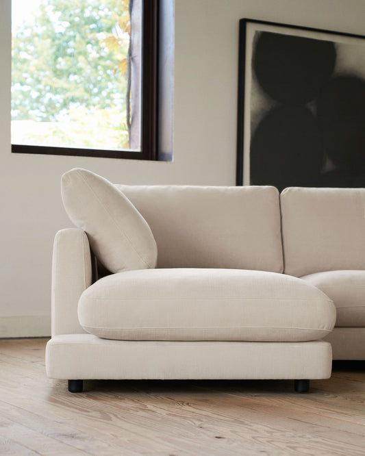 Gala 4-seater sofa with left chaise longue in beige chenille FSC Mix Credit 300cm
