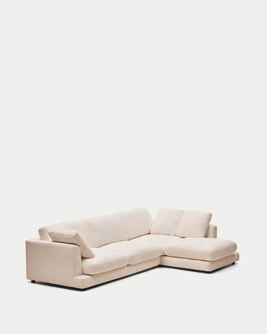 Gala 4-seater sofa with right chaise longue in beige chenille FSC Mix Credit 300cm